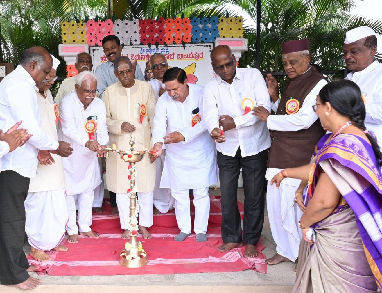 ಸಪ್ತಸಾಗರ ವಾರ್ತೆ,ವಿಜಯಪುರ, ನ. 1 : ನಗರದ ಶ್ರೀ ಸಿದ್ದೇಶ್ವರ ಸಂಸ್ಥೆಯ ಅಧೀನದಲ್ಲಿ ನಡೆಯುವ ಸಂಗನಬಸವ ಶಿಶುನಿಕೇತನ ಶಾಲೆಯಲ್ಲಿ ೬೯ ನೇ ಕನ್ನಡ ರಾಜ್ಯೋತ್ಸವವನ್ನು ಆಚರಿಸಲಾಯಿತು ಶ್ರೀ ಸಿದ್ದೇಶ್ವರ ಸಂಸ್ಥೆಯ ಚೇರ್ಮನ್ ರಾದ ಶ್ರೀ ಬಸಯ್ಯ ಹಿರೇಮಠ ಹಾಗೂ ಶಾಲೆಯ ನಾಮಿನಿ ಚೇರ್ಮನ್ ರಾದ ಶ್ರೀ ಎಸ್ ಎಚ್ ನಾಡಗೌಡ ರವರು ಹಾಗೂ ಸಂಸ್ಥೆಯ ಆಡಳಿತಾದಿಕಾರಿಗಳು ಹಾಗೂ ಶಾಲೆಯ ಪ್ರಾಂಶುಪಾಲರಾದ ಶ್ರೀ ವಿಜಯಲಕ್ಷ್ಮೀ ರಾ ಪಟ್ಟೇದ ಅವರು ಹಾಗೂ ಉಪ ಪ್ರಾಚಾರ್ಯರು ಉಪ ಪ್ರಾಂಶುಪಾಲರು ನಾಡದೇವಿ ಭುವನೇಶ್ವರ ಭಾವಚಿತ್ರಕ್ಕೆ ಪುಷ್ಪ ಸಲ್ಲಿಸಿ ಜ್ಯೋತಿ ಬೆಳಗುವುದರ ಮೂಲಕ ಕಾರ್ಯಕ್ರಮಕ್ಕೆ ಚಾಲನೆ ನೀಡಿದರು.