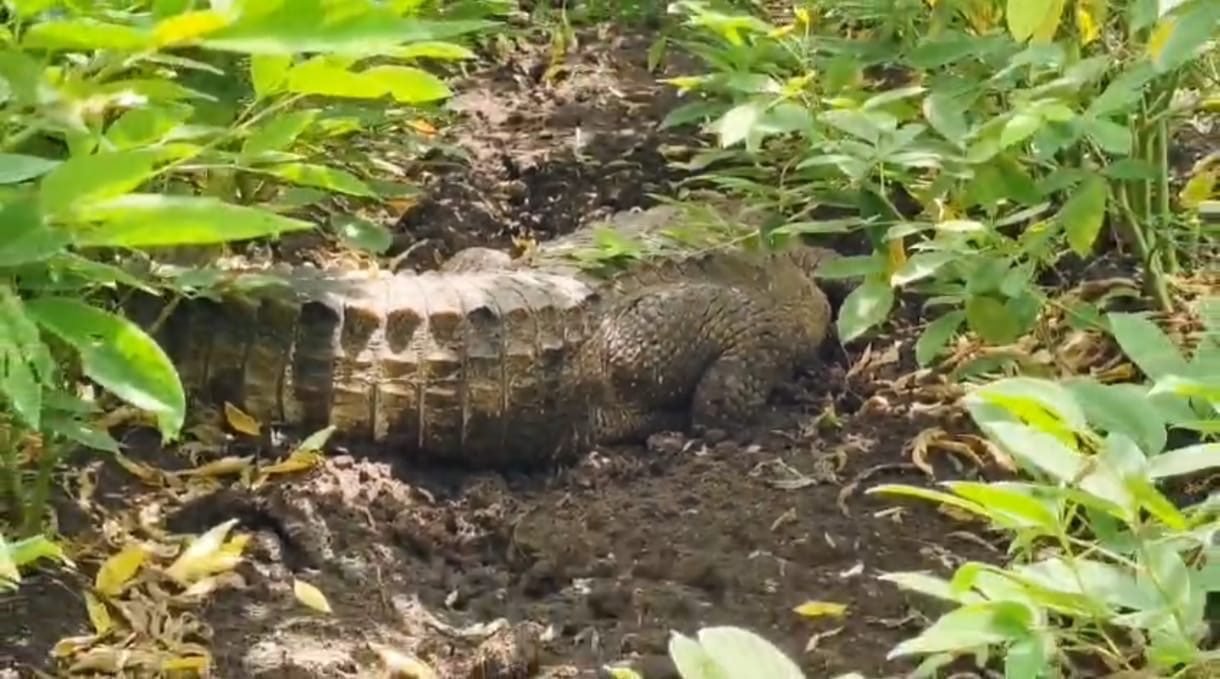 ತೊಗರಿ ಬೆಳೆ ಮಧ್ಯೆ ಮೊಸಳೆ ಅವಿತುಕೊಂಡಿದೆ.