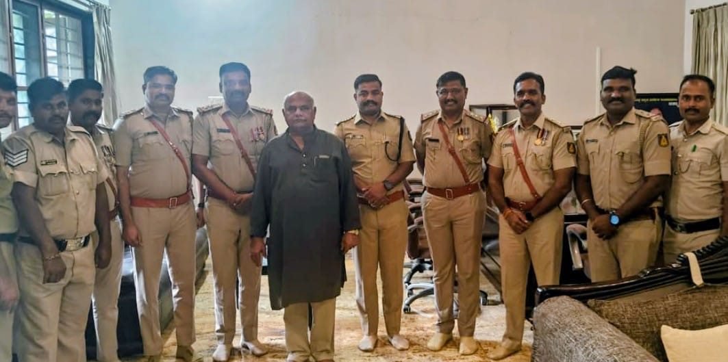 ಮಂಗಳವಾರ ನಗರದಲ್ಲಿರುವ ಸಚಿವರ ಗೃಹ ಕಛೇರಿಯಲ್ಲಿ ಬಸವನಬಾಗೇವಾಡಿ ಉಪ ವಿಭಾಗದ ಡಿ‌.ಎಸ್.ಪಿ. ಬಲ್ಲಪ್ಪ ನಂದರೆಡ್ಡಿ ನೇತೃತ್ವದಲ್ಲಿ ಆಗಮಿಸಿದ್ದ ಬಸವನಬಾಗೇವಾಡಿ ವಿಧಾನಸಭೆ ವ್ಯಾಪ್ತಿಯ ಠಾಣೆಗಳ ಪೊಲೀಸ್ ಅಧಿಕಾರಿಗಳು ಹೂಗುಚ್ಚ ನೀಡಿ ಶುಭಾಶಯ ಕೋರಿದರು.