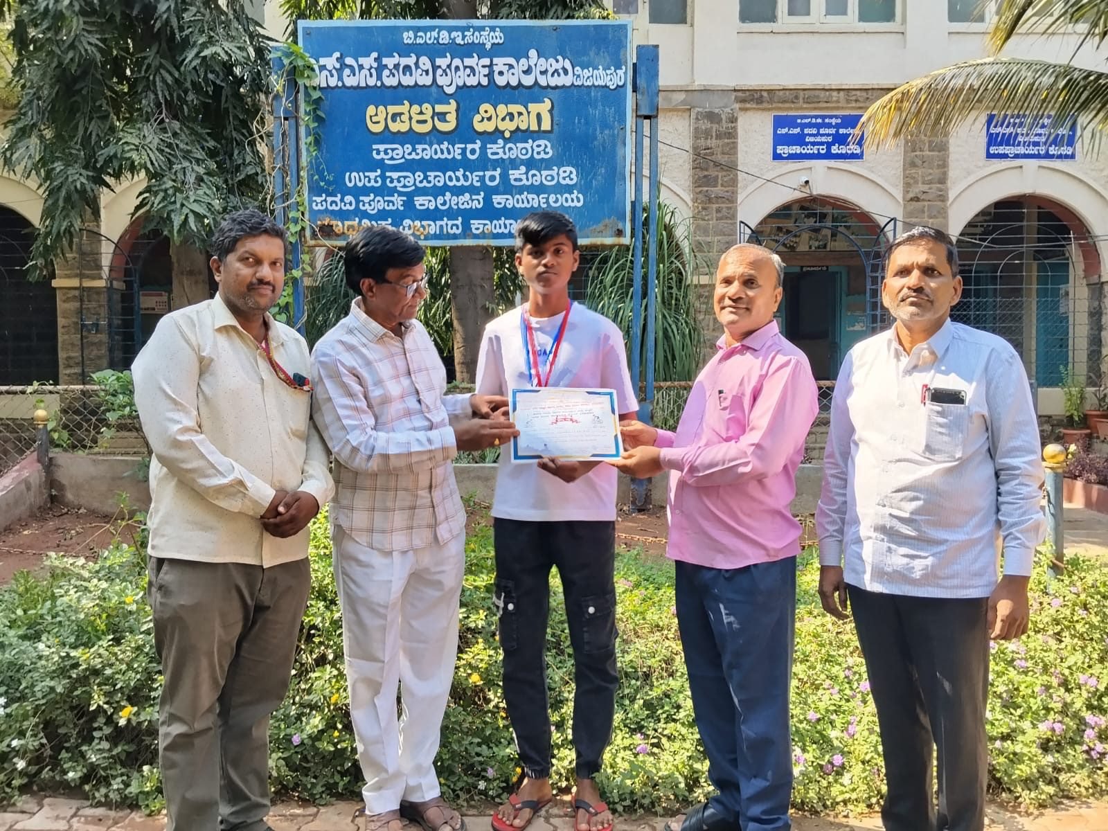 ಶಾಲಾ ಶಿಕ್ಷಣ ಇಲಾಖೆ ಪದವಿ ಪೂರ್ವ ವಿಜಯಪುರ ಹಾಗೂ ಕೋನಿಕ ಕಲಾ ವಿಜ್ಞಾನ ಹಾಗೂ ವಾಣಿಜ್ಯ ಪದವಿ ಪೂರ್ವ ಕಾಲೇಜಿನ ಸಂಯುಕ್ತಾಶ್ರಯದಲ್ಲಿ ಮಂಗಳವಾರ ನಡೆದ 2025-26ನೇ ಸಾಲಿನ ವಿಜಯಪುರ ಜಿಲ್ಲಾ ಮಟ್ಟದ ಪದವಿ ಪೂರ್ವ ಕಾಲೇಜುಗಳ ಸೈಕ್ಲಿಂಗ್ ಕ್ರೀಡಾಕೂಟದಲ್ಲಿ ನಗರದ ಬಿ ಎಲ್ ಡಿ ಇ ಸಂಸ್ಥೆಯ ಎಸ್ ಎಸ್ ಪದವಿ ಪೂರ್ವ ಕಾಲೇಜಿನ ವಿದ್ಯಾರ್ಥಿ ಪುನೀತ್ ಬಿರಾದಾರ 1 ಕಿಮೀ ಟ್ರ್ಯಾಕ್ ನಲ್ಲಿ ಪ್ರಥಮ ಸ್ಥಾನ ಪಡೆದು ರಾಜ್ಯಮಟ್ಟಕ್ಕೆ ಆಯ್ಕೆಯಾಗಿದ್ದಾನೆ.