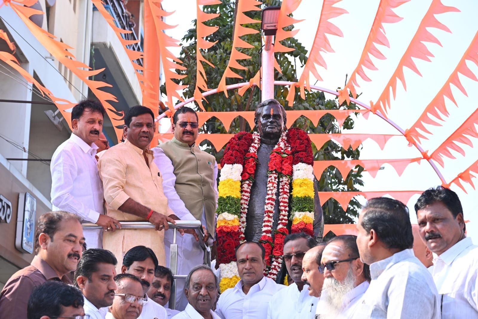 ನಗರದ ಭಾರತರತ್ನ ಅಟಲ್ ಬಿಹಾರಿ ವಾಜಪೇಯಿ ವೃತ್ತದಲ್ಲಿ ಗುರುವಾರ ವಾಜಪೇಯಿ ಅವರ 101ನೇ ಜನ್ಮ ದಿನದ ಅಂಗವಾಗಿ ಅವರ ಪುತ್ಥಳಿಗೆ ಮಾಲಾರ್ಪಣೆ ಮಾಡಿ ಗೌರವ ನಮನ ಸಲ್ಲಿಸಿದ ನಂತರ ಮಾತನಾಡಿದ ಅವರು, ವಾಜಪೇಯಿ ಅವರು ಶುದ್ಧ ಸಚ್ಚಾರಿತ್ರ್ಯದ ರಾಜಕಾರಣಿ, ಅಜಾತಶತ್ರುರಾಗಿದ್ದ ಅವರು ರಾಷ್ಟ್ರ ಚಿಂತಕರಾಗಿದ್ದರು ಎಂದರು.