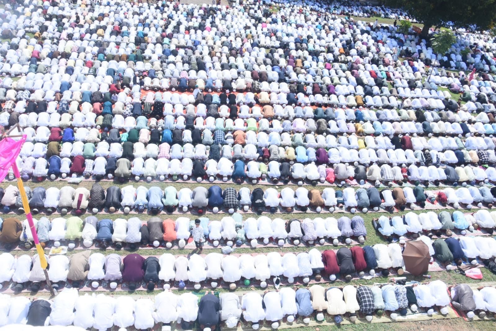 ನಮಾಜ್ ಪೂರ್ಣಗೊಂಡ ಬಳಿಕ ಪರಸ್ಪರ ಈದ್ ಮುಬಾರಕ್ ಈದ್ ಮುಬಾರಕ್ ಎಂದು ಶುಭಾಷಯ ವಿನಿಮಯ ಮಾಡಿಕೊಂಡರು.