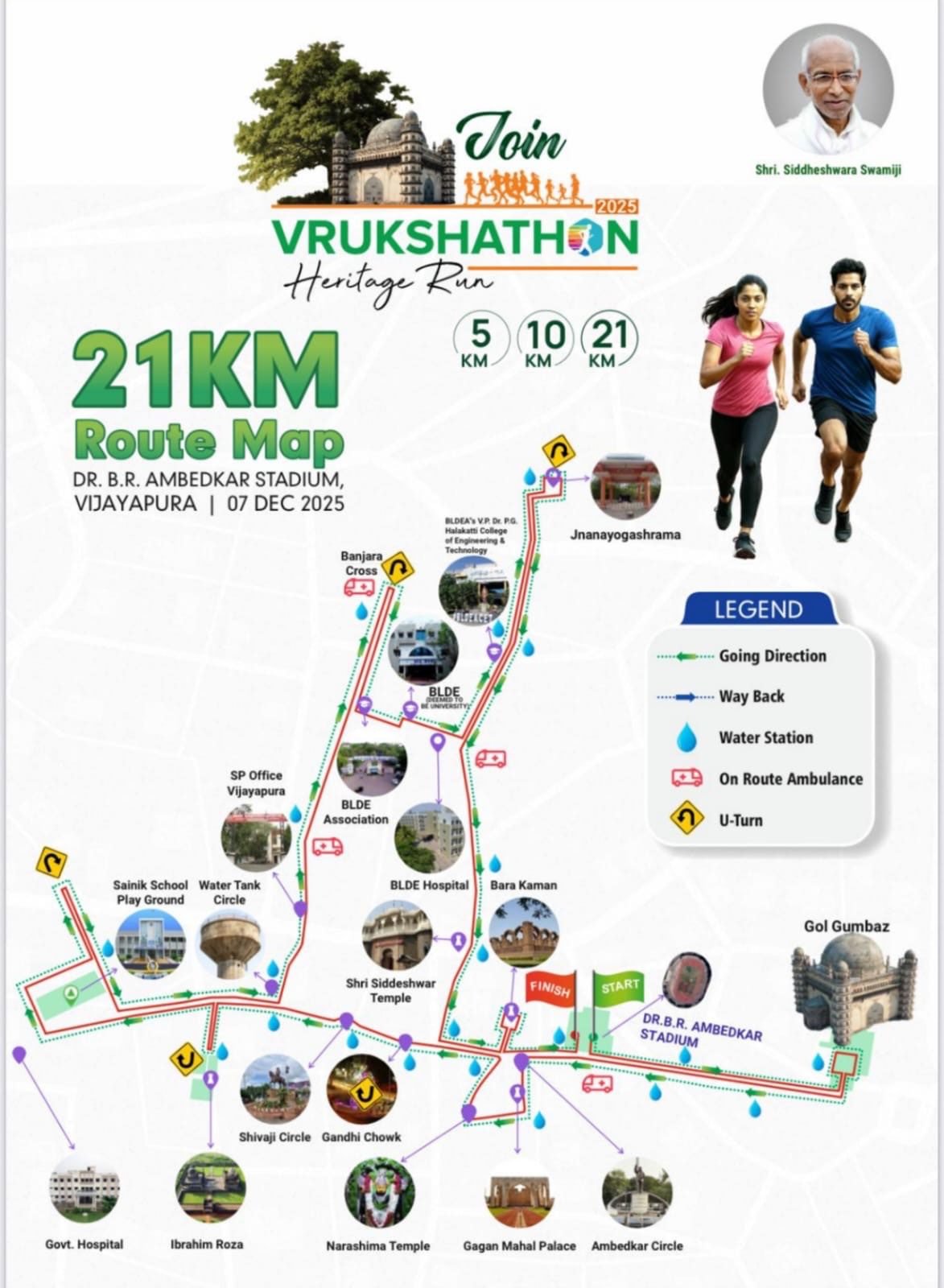 ಸಪ್ತಸಾಗರ ವಾರ್ತೆ, ವಿಜಯಪುರ, ಡಿ. 4: ನಗರದಲ್ಲಿ ಡಿಸೆಂಬರ್ 7 ರಂದು ರವಿವಾರ ನಡೆಯಲಿರುವ ವೃಕ್ಷಥಾನ್ ಹೆರಿಟೇಜ್ ರನ್-2025 ಓಟದಲ್ಲಿ ಪಾಲ್ಗೋಳ್ಳಲಿರುವ ಕ್ರೀಡಾಪಟುಗಳು ಓಡಲಿರುವ ಮಾರ್ಗ ಮತ್ತು ಓಟ ಪ್ರಾರಂಭವಾಗಲಿರುವ ಸ್ಥಳ, ಸಮಯ ಮತ್ತಿತರ ಮಾಹಿತಿಯನ್ನು ರನ್ ಕೋರ್ ಕಮಿಟಿ ಪ್ರಕಟಿಸಿದೆ.